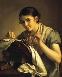 Тропинин Василий Андреевич написал прекрасный портрет девушки, которая склонившись над своим рукоделием лукаво смотрит на нас сквозь все года, которые нас разделяют.