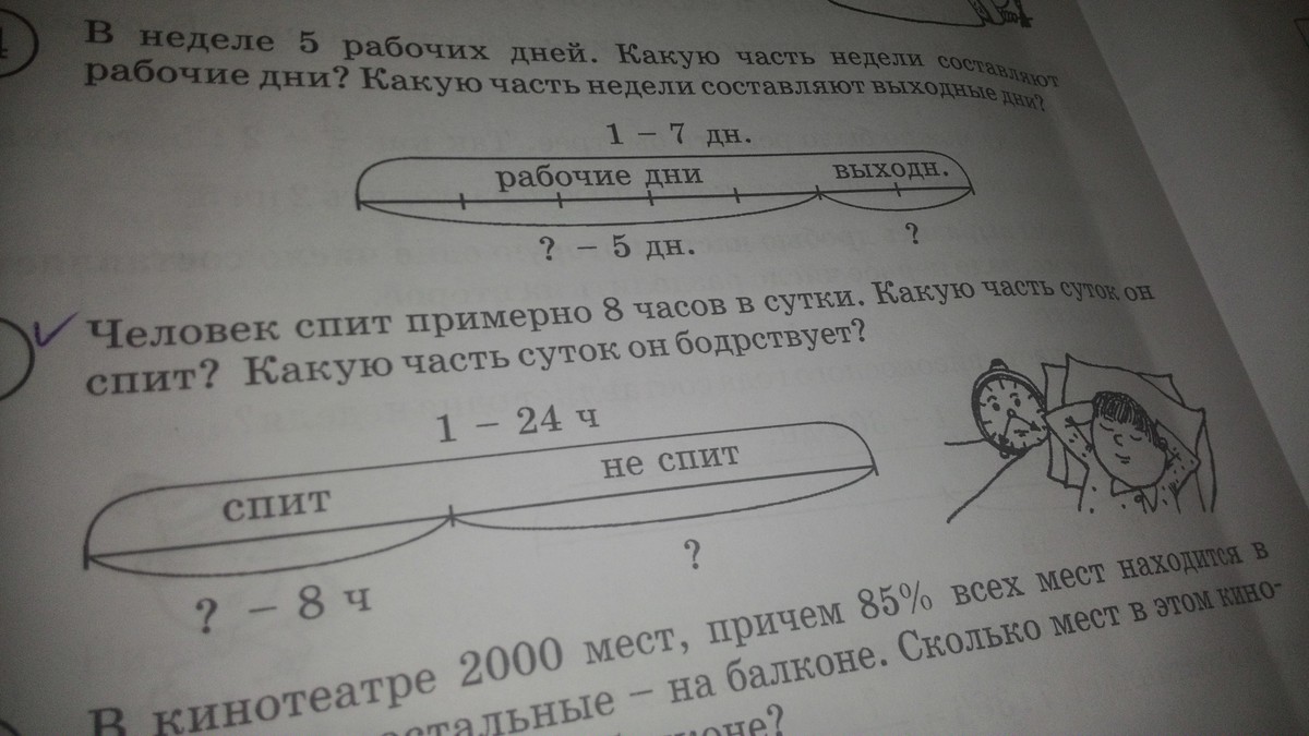 человек спит примерно 8 часов в сутки. какую часть суток он спит? какую часть суток он торжествует?