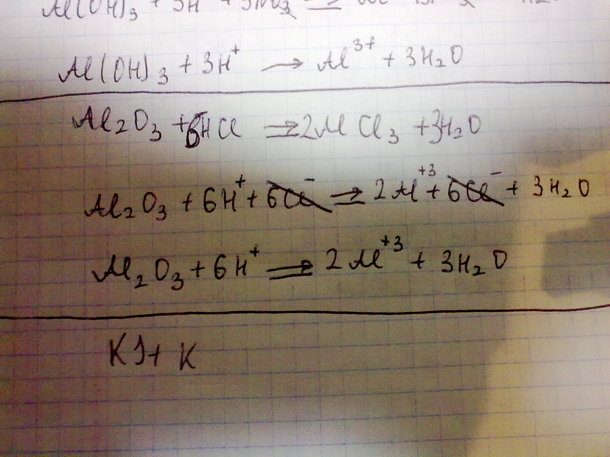 Al2O3 + 6H+ + 6Cl− = 2Al2+ + 3Cl− + 3H2O - ионная(полная форма)