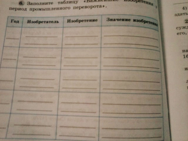 Заполните таблицу"Важнейшие изобретения в период промышленного переворота".