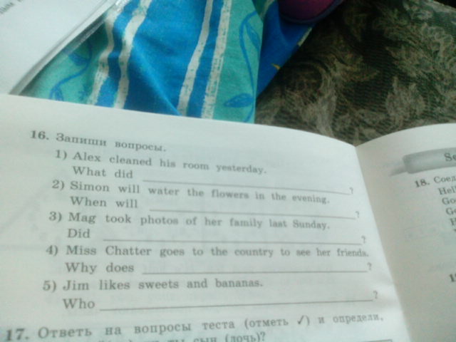 1. past simple (прошедшее)= вопросит. слово + вспомог. глаг did + подлеж + сказуем/ инфинитив, без ed- Что Алекс чистил/убирал вчера?