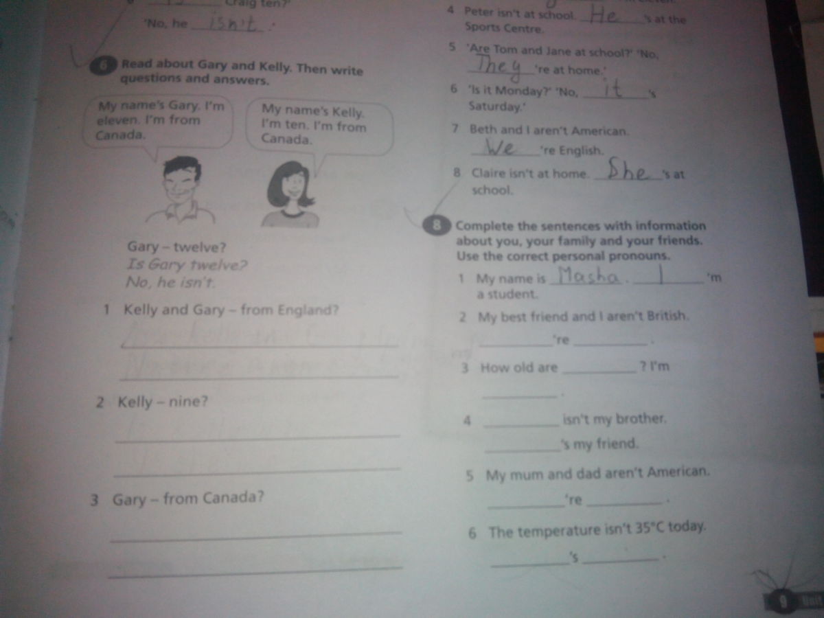 6.1) Are Kelly and Gary from England? - No, they aren`t.