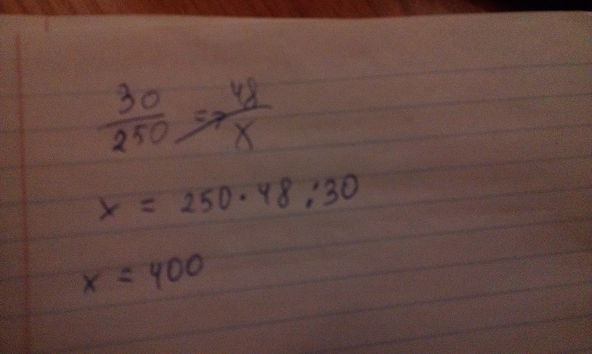 Из 30кг муки испечено 250 булочек. Сколько таких булочек можно испечь из 48 кг муки?