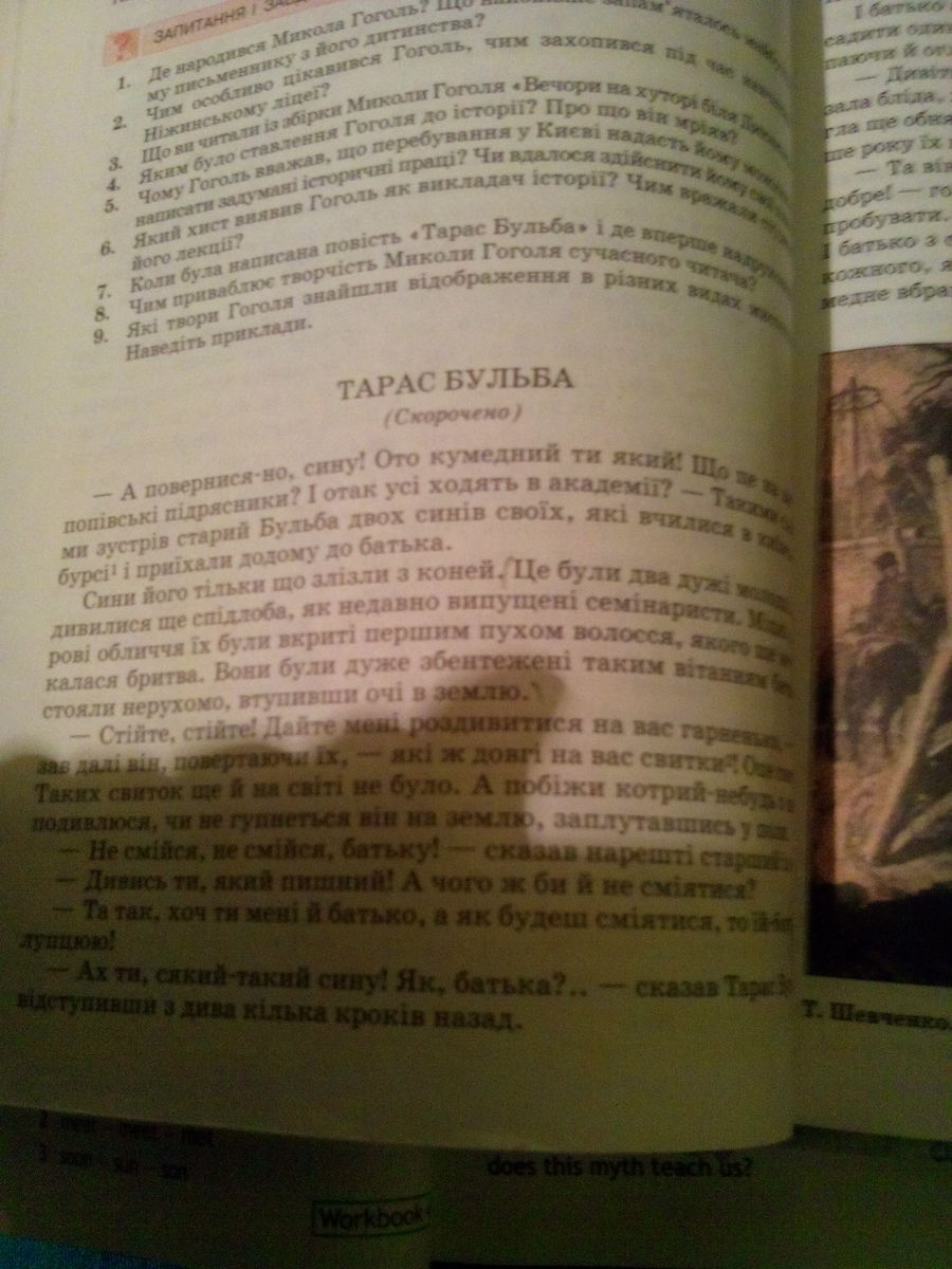 1. Якому періоду життя України присвячена повість?2. Чи вдалим здається вам початок повісті ? Чому ?3. Які якості Тараса Бульби як народного героя втілені в повісті ?4. Як характеризує автор Тараса Бульбу та його синів ?5. Чим привабливі образи запорожців ?6. Чому саме Тараса Бульбу обрали козаки наказним отаманом ? Чи вважаєте ви вдалим їх вибір?7. Які рядки повісті виражають її основну ідею ?8. Як показаний героїзм козаків?