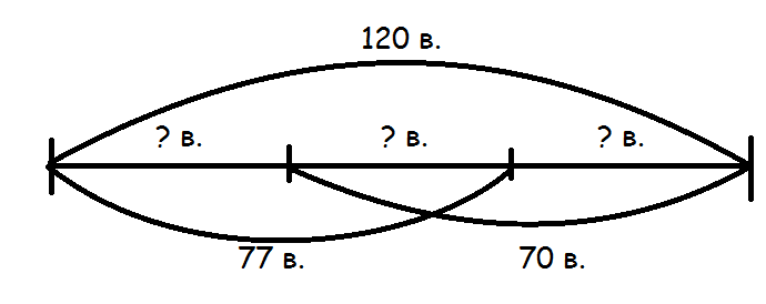 В трёх составах 120 товарных вагонов. В первом и втором составах вместе 77 вагонов, во втором и третьем - 70 вагонов. Сколько вагонов в каждом составе?