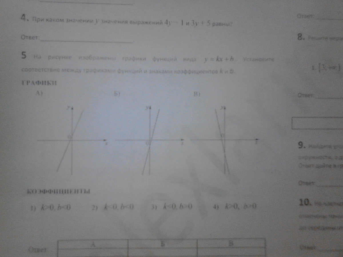 Установите соответствие между графиками функций и знаками коэффициентов к И б!