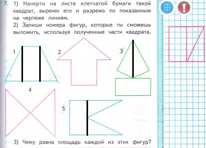 №7. начерти на листе клетчатой бумаги такой квадрат , вырежи его и разрежь по показанным на чертеже линиям.
