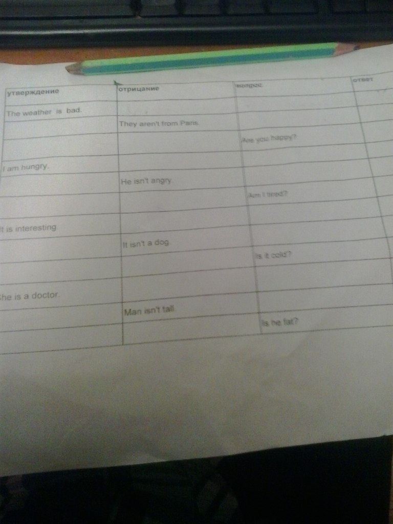 The weather is bad. The weather isn't bad, Is the weather bad?