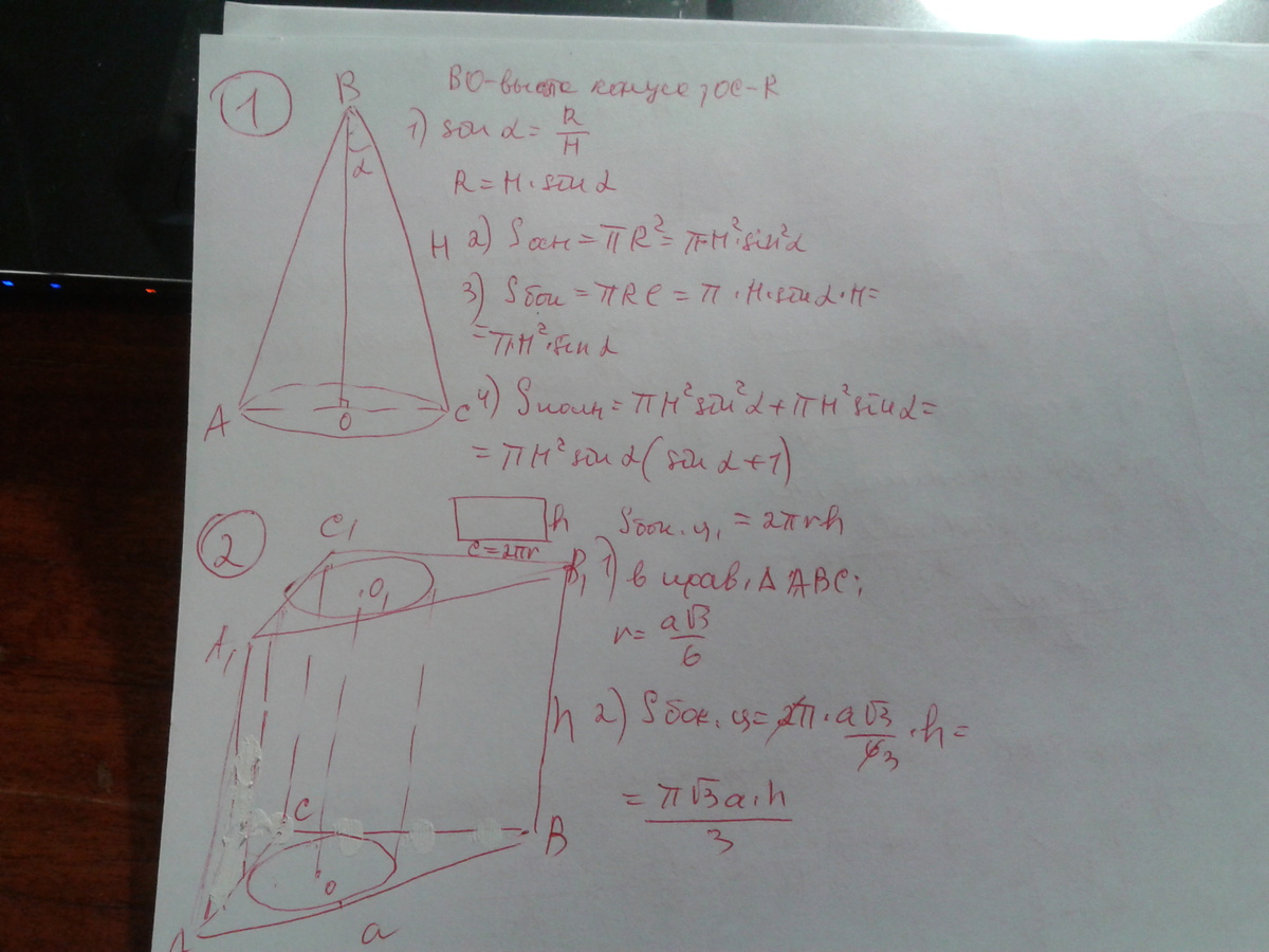 Думаю в 1 ошибка берете синус,но образуюшая неизвестна