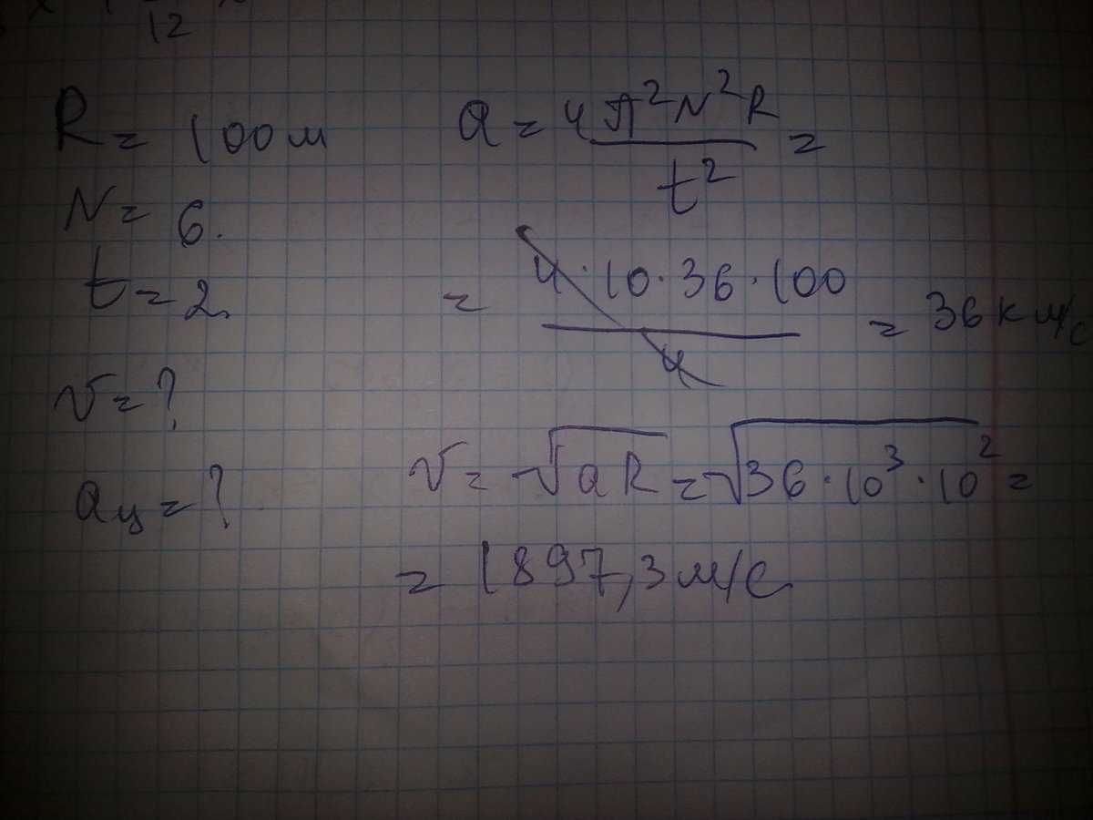 1. тело, двигаясь по окружности радиусом 100м совершает 6 оборотов за 2 минуты. Определите центростремительное ускорение и линейную скорость.
