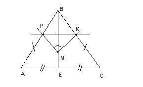 В треугольнике АВС АВ= ВС. На медиане ВЕ отмечена точка М, а на сторонах АВ и ВС-точки Р и К соответственно. (Точки Р, М и К не лежат на одной прямой.)