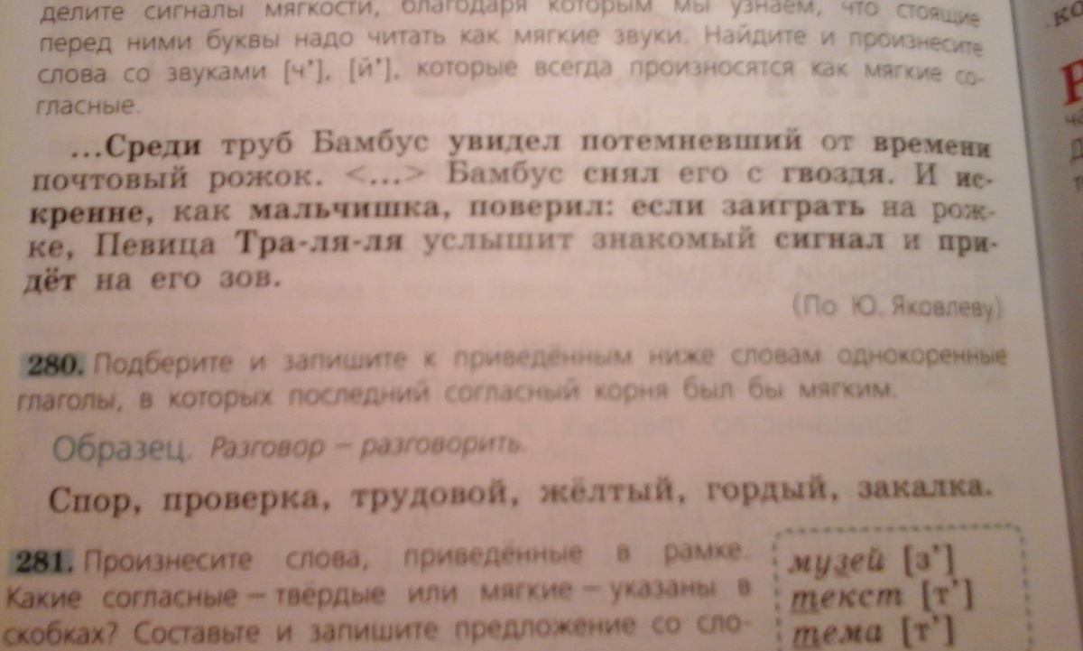Подберите и запешите к приведённым ниже словам однокоренные глаголы, в которых последний согласный корня был бы мягким.