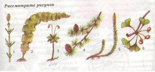2, водоросли, 3 моховидные, 4 голосеменные, 5 плауновидные 6 покрытосеменные