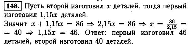 Помогите решить! Двое рабочих изготовили 86 деталей, причем первый изготовил на 15% больше, чем второй. Сколько деталей изготовил каждый рабочий?