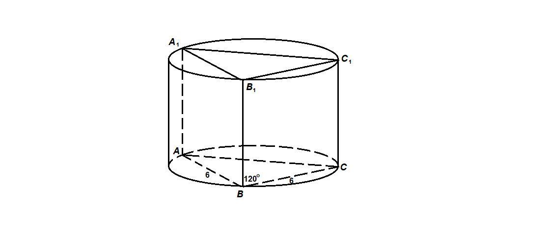 Дано: ABCA1B1C1 - прямая призма, AB=BC=6, уголABC=120°, AA1=10 Найти Sбок.цил. Помогите, пожалуйста) нууу же кто-нибудь, поставлю лучший