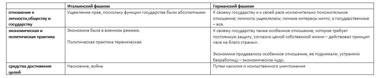 Нацизм в Германии получил более широкое развитие, было что-то хорошее от него. В Италии же установился авторитарный режим и военная диктатура.