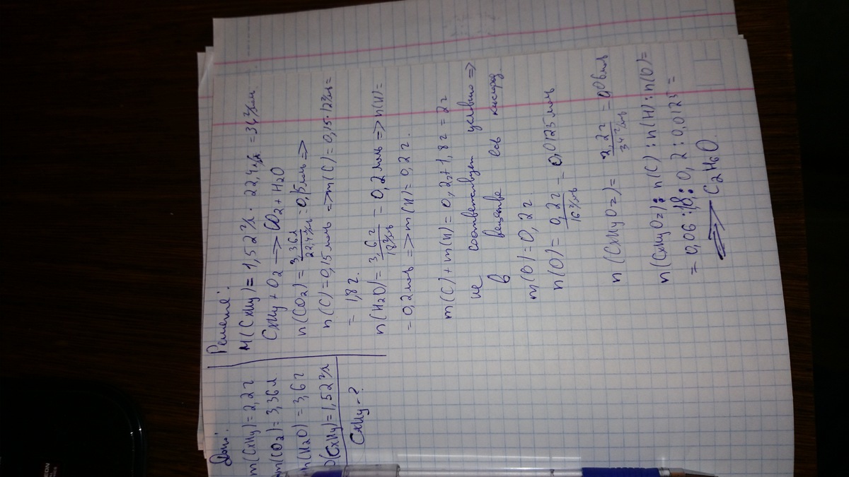 При сжигании 2,2 г органического вещества получили 3,36 л (н.у.) углекислого газа и 3,6 г воды. Плотность вещества равна 1, 52 г/л. Выведите молекулярную формулу вещества.
