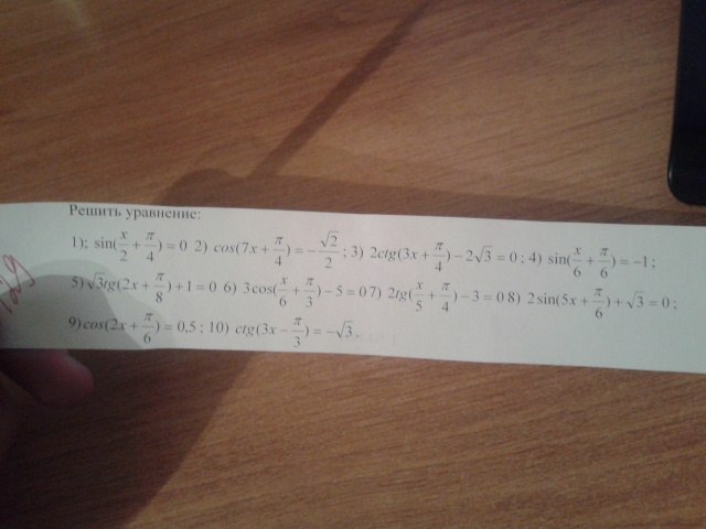 7)2tg(x/5+pi/4)-3=0 tg(x/5+pi/4)=3/2 x/5+pi/4= arctg(3/2) x/5=-pi/4+arctg3/2 x=-5pi/4+5arctg3/2