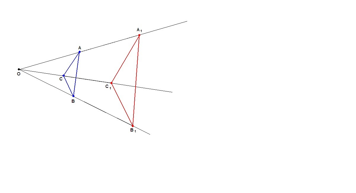 постройте треугольник гомотетичный треугольнику ABC если даны центр гомотетии О и ее коэффициент K=2