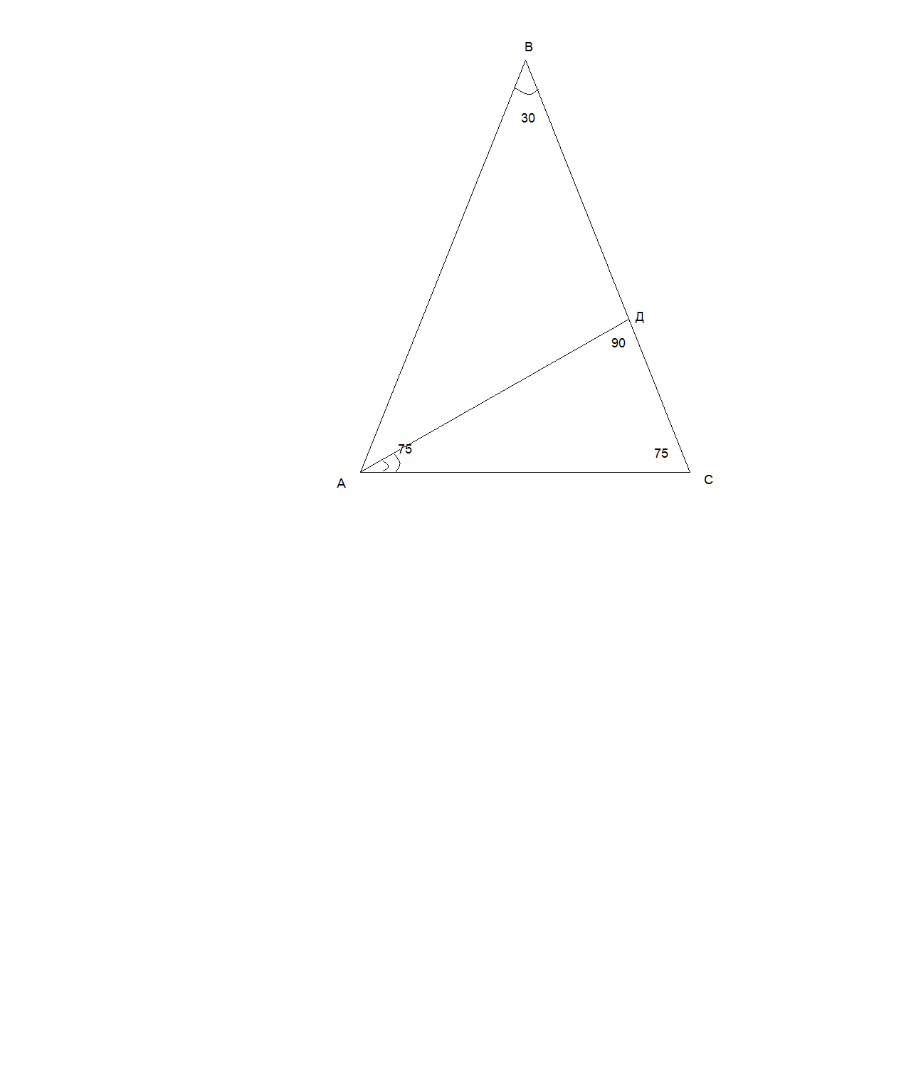 2). Так, как треугольник равнобедренный значит и углы при основании будут равны, они становлять 75градусов.
