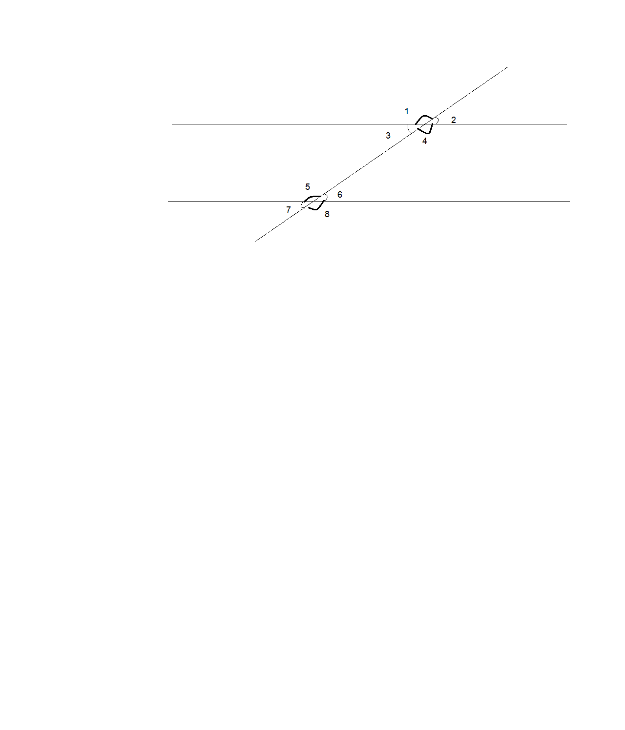 1). Когда мы нарисуем рисунок, то увидим, что это сечная. Отсюда ми уже знаем, что каждий противоположный внутренний угол будет равен противоположеному внутренему улу, така само и со внешнеми углами. Если взять только одну прямую с сечной, то это образуеться вертикальние углы, вместе с их особеностями.