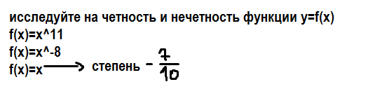 Первая функция нечётная, вторая чётная, третья ни чётная, ни нечетная (функция общего вида).