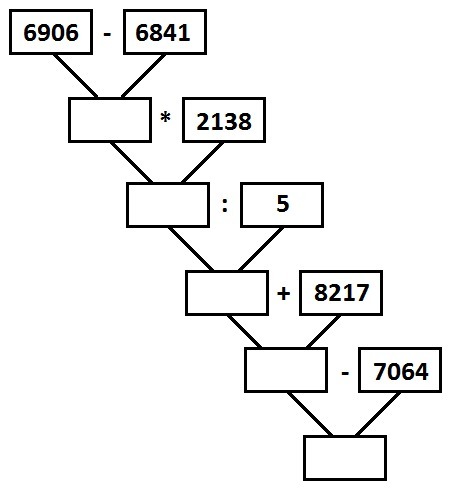 составьте программу вычисления выражения 8217+2138*(6906-6841)/5-7064