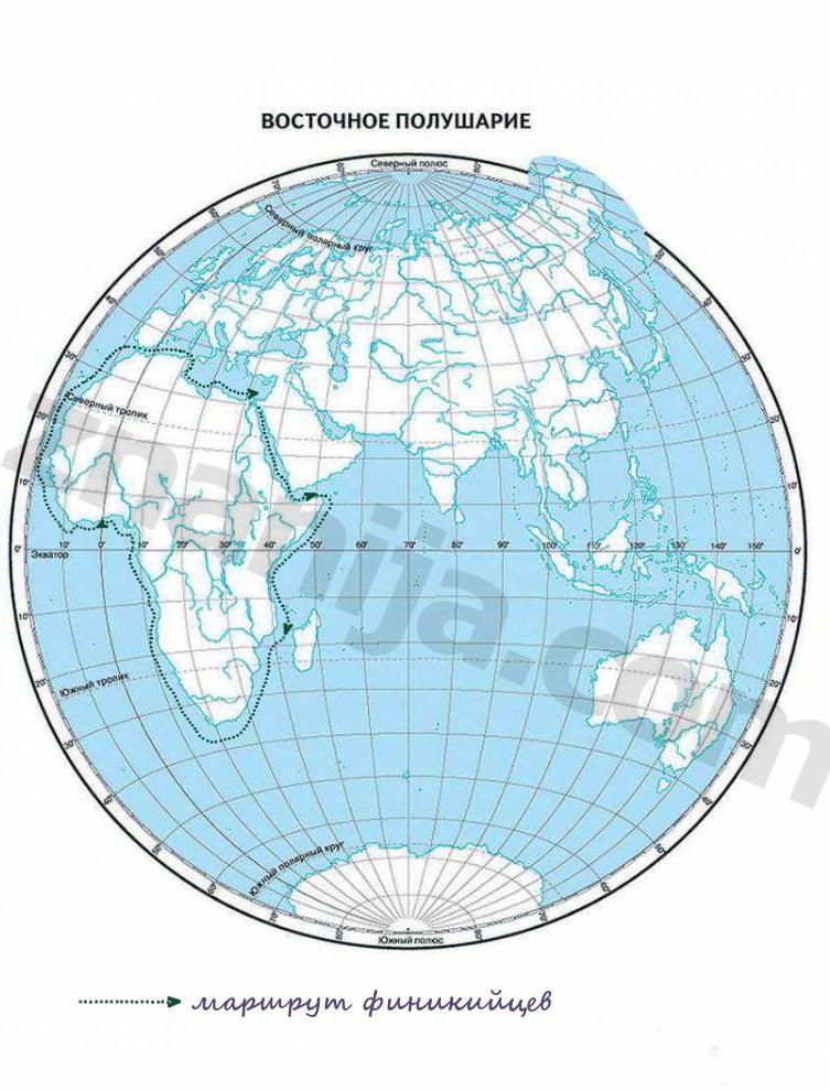 К ответу я прикрепила карту плавания финикийцев, как оно подается в заданиях на контурных картах.