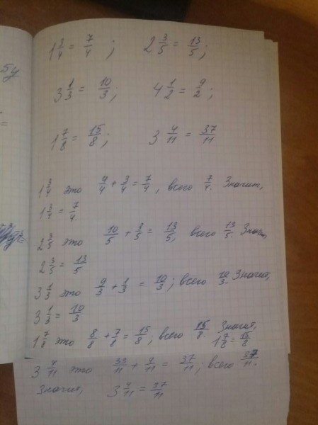 Представьте число в виде неправильной дроби: 1 34, 2 3/5, 3 13,4 1/2,1 7/8,3 4/11.