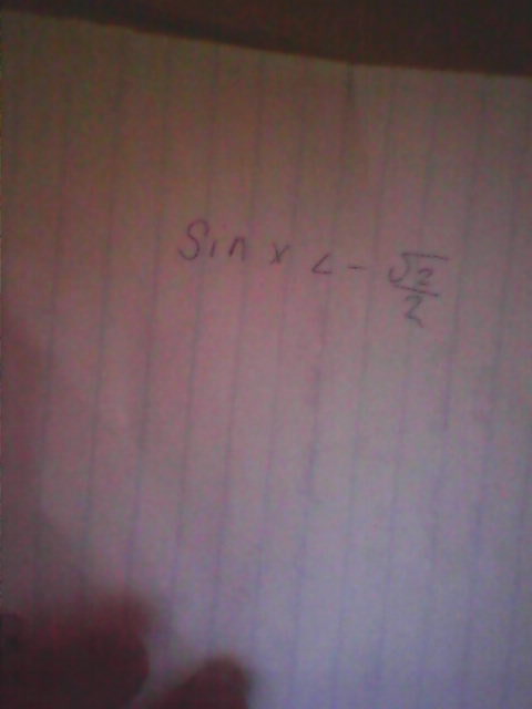- π - arcsin(-√2/2) + 2πn < x < arcsin(-√2/2) + 2πn, n∈Z