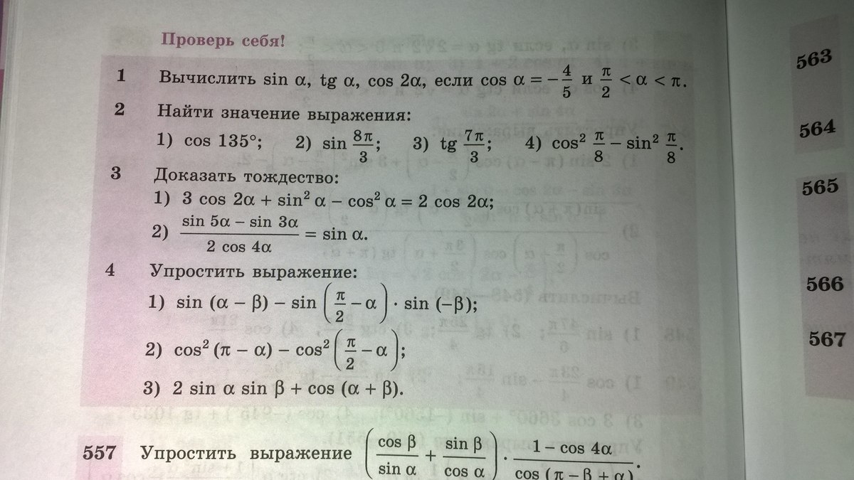 Алгебра и начала математического анализа 10-11 класс. Алимов и др. Задание: Проверь себя. Помогите, пожалуйста. Баллов не жалко
