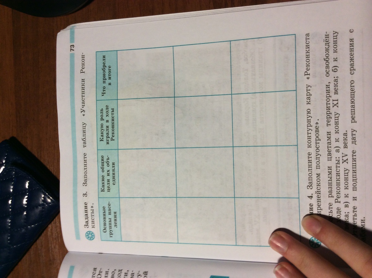 Заполните таблицу участники реконкисты (картинка под текстом)