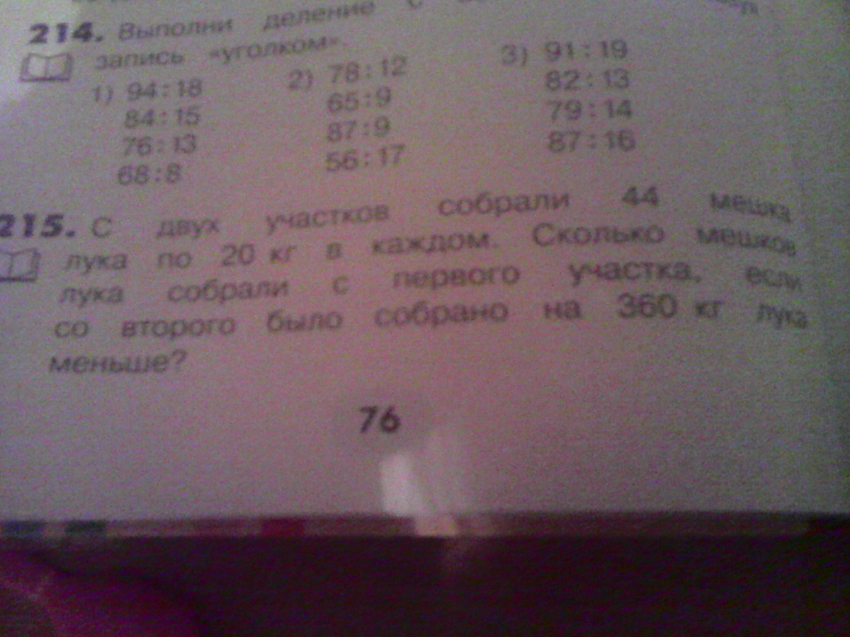 С двух участков собрали 44 мешка лука по 20 кг в каждом. Сколько мешков лука собрали с первого участка, если со второго было собрано на 360 кг лука меньше?