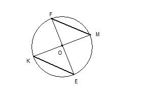 отрезки КМ и EF являются диаметрами окружности с центром О.Докажите, что отрезки КЕ и MF равны. срочно пожалуйста!!!