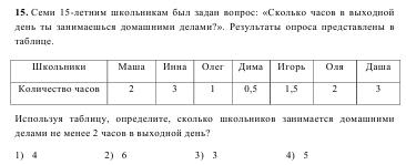 б)Семи 15-летним школьникам был задан вопрос: «Сколько часов в выходной
