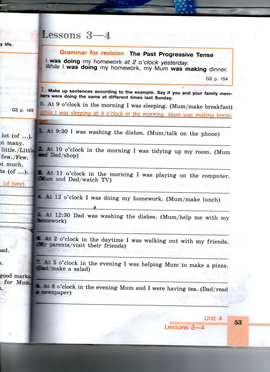 4.While I was doing my homework at 12 o'clock mum was making lunch.