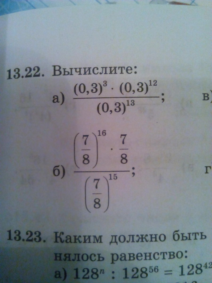 а) 0,3^15/0.3^13=0.3^2=0.09