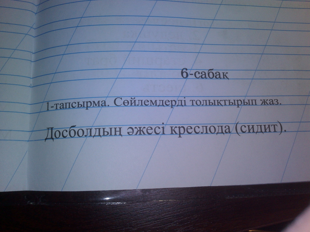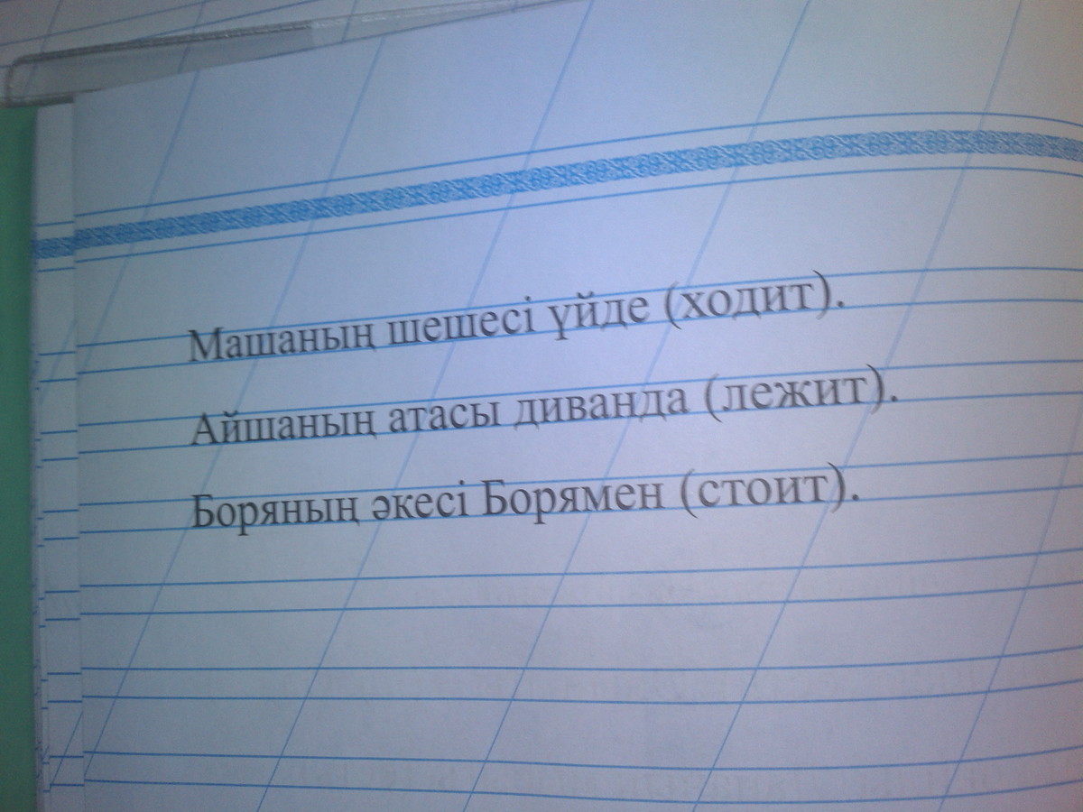 айшаның атасы диванда жатар (ашаны дедушка лежит на диване)