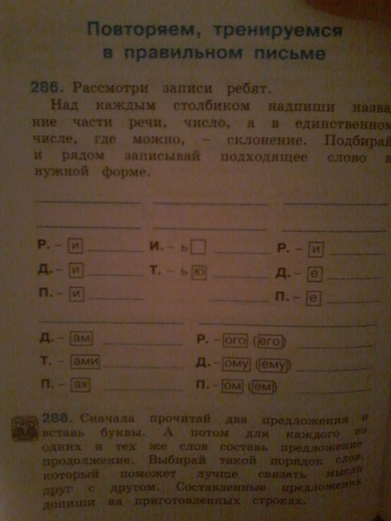 Над каждым столбиком надпиши название части речи, число,а в единственном числе, где можно,- склонение. Подбирай и рядом записывай подходящие слово в нужной форме.