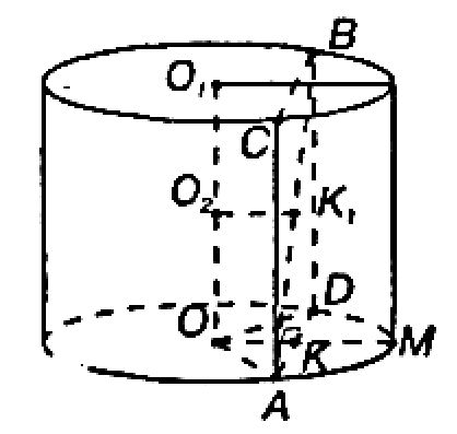 Высота цилиндра 6 дм, радиус основания 5 дм. Концы отрезка АВ, равного 10 дм, лежат на окружности обоих оснований. Найдите кратчайшее расстояние от него