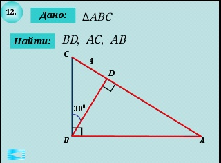 так как угол А=30 то используем то же свойство то ВА=8√3
