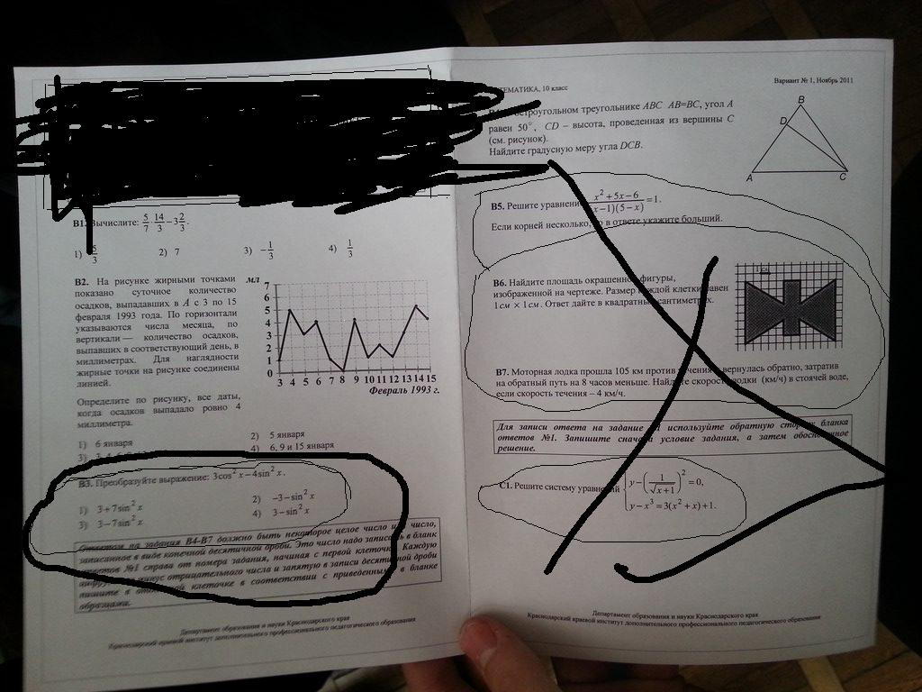ответ 3) 3сos^2x-4sin^2x=3cos^x+3sin^2x-7sin^2x=3-7sin^2x