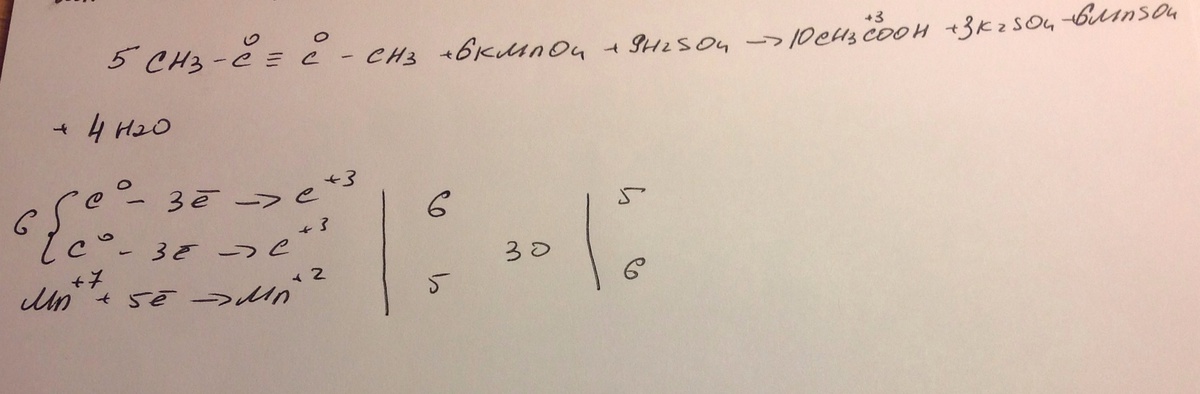 5CH3-C=-C-CH3 + 6KMnO4 + 9H2SO4 = 10CH3COOH + 3K2SO4 + 6MnSO4 + 4H2O
