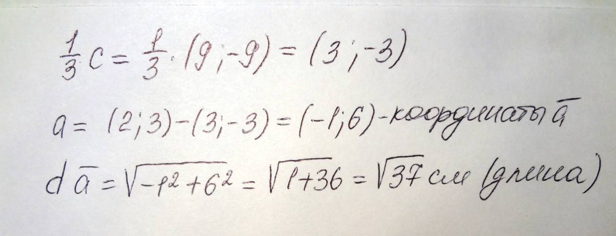найдите координаты и длину вектора a если a=b-1/3c , b={2; 3} c={9;-9}