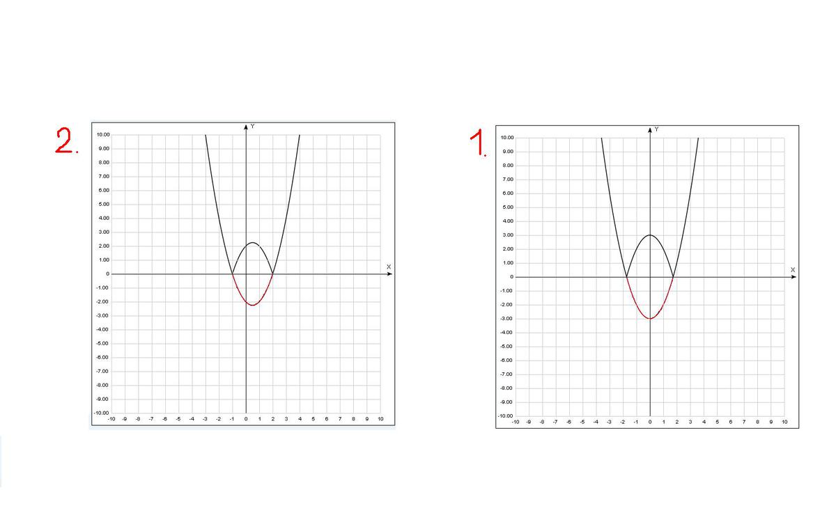 Принцип построения первого и второго графика схож. Здесь под модулем всё выражение, а значит, ТА ЧАСТЬ ГРАФИКА, которая находится НИЖЕ оси ОХ, симметрично отображается по этой оси. Сначала построим обычные графики.