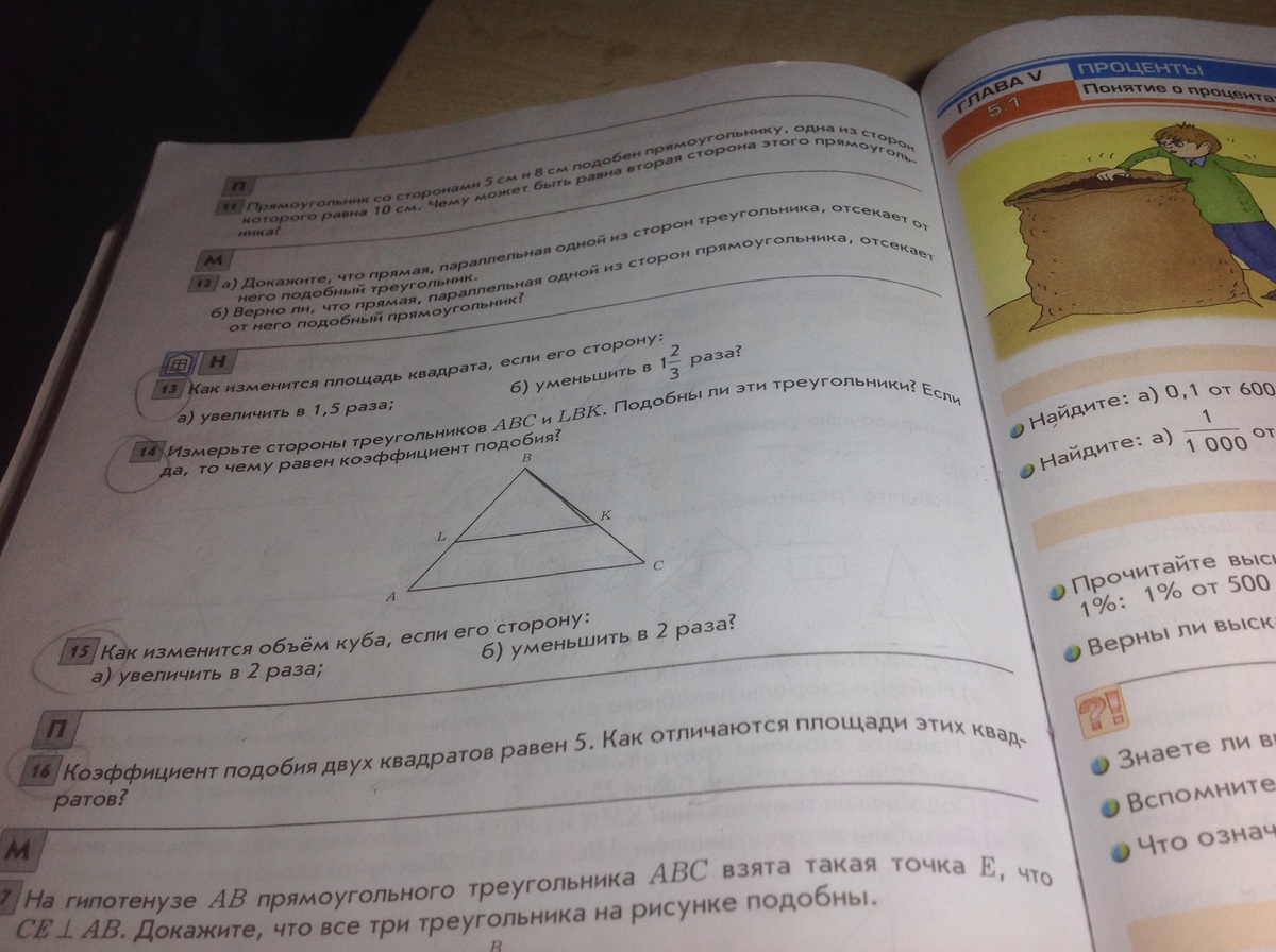 Да, подобны. Решение через признак подобия треугольников. Отношение сторон AB:Lb=3.1:1.9=1.6; AC:LK=4.3:2.7=1.6; BC:BK=3.4:2.1=1.6 коефициент подобия сторон =1.6 во всех сторонах. Доказываем: коефициент в квадрате должен быть равен соотношению площадей треугольников. 1.6 в квадр.=2.6; SтреугABC=1/2a*b=1/2AB*BC=1/2*3.1*3.4=5.27; SLBK=1/2LB*BK=1/2*1,9*2.1=1.99; Sabc:Slbk=5.27:1.99=2.6; коефициент соотношения площадей равен найденному ранее коефиц.в квадрате, что доказывает подобие треугольникков.