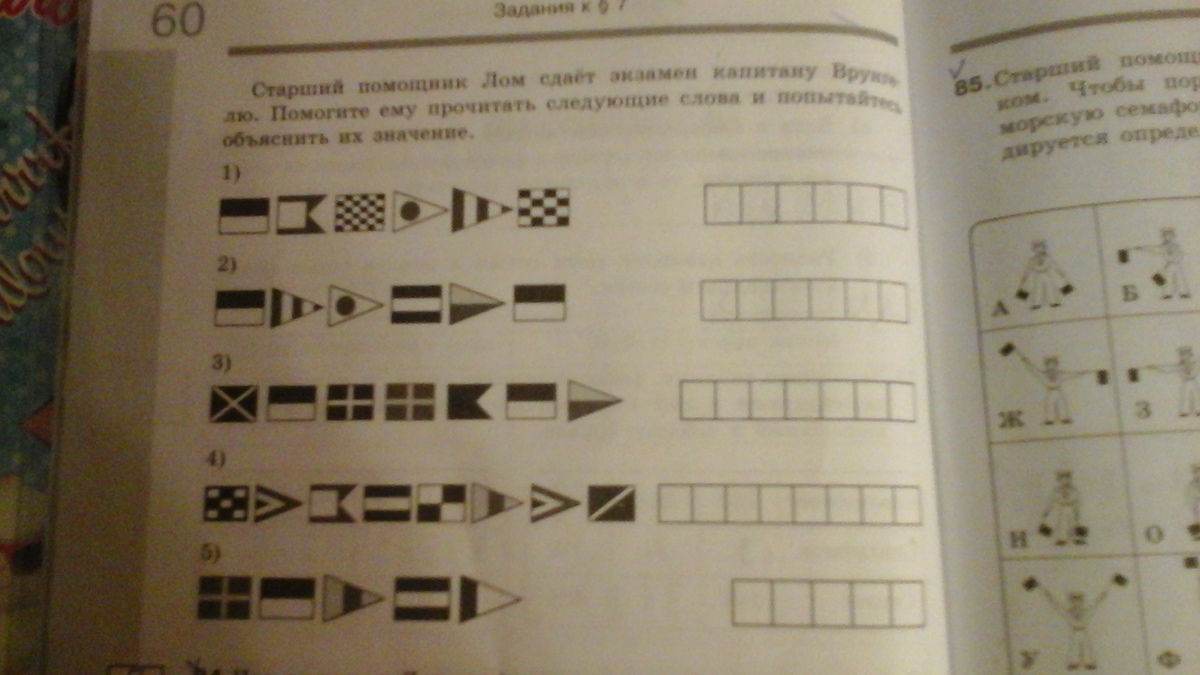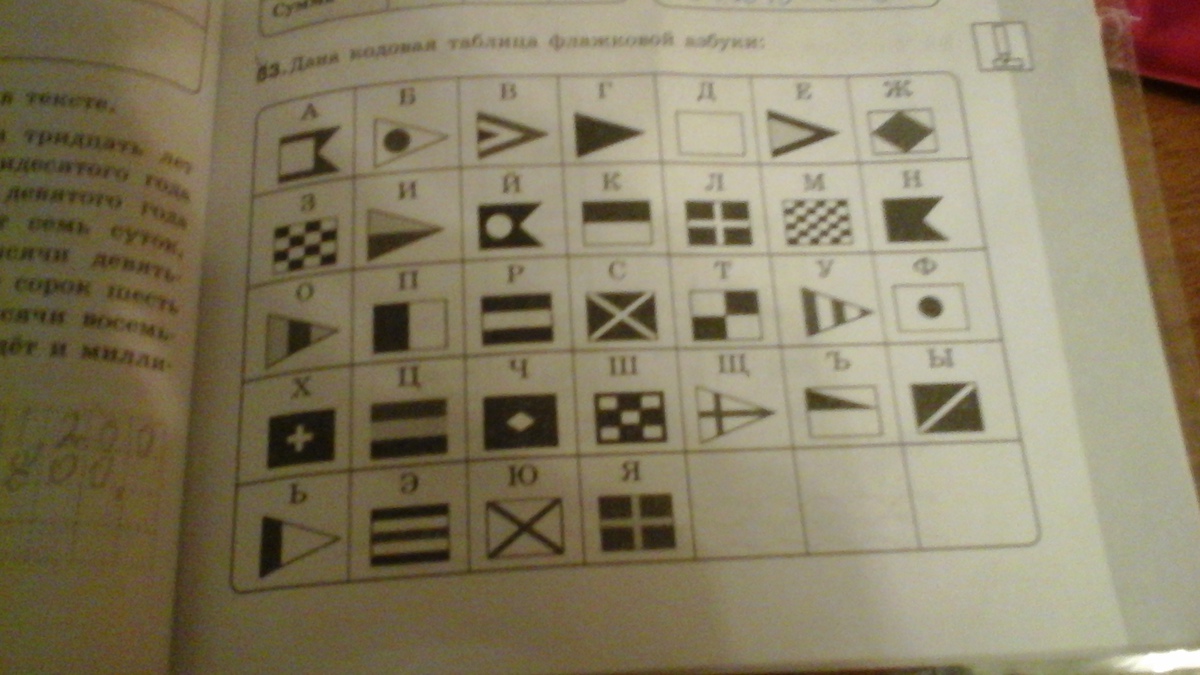 Дана кодовая таблица флажковой азбуки:фото 1. Помогите прочитать следующие слова и попытайтесь их объяснить значение фото 2