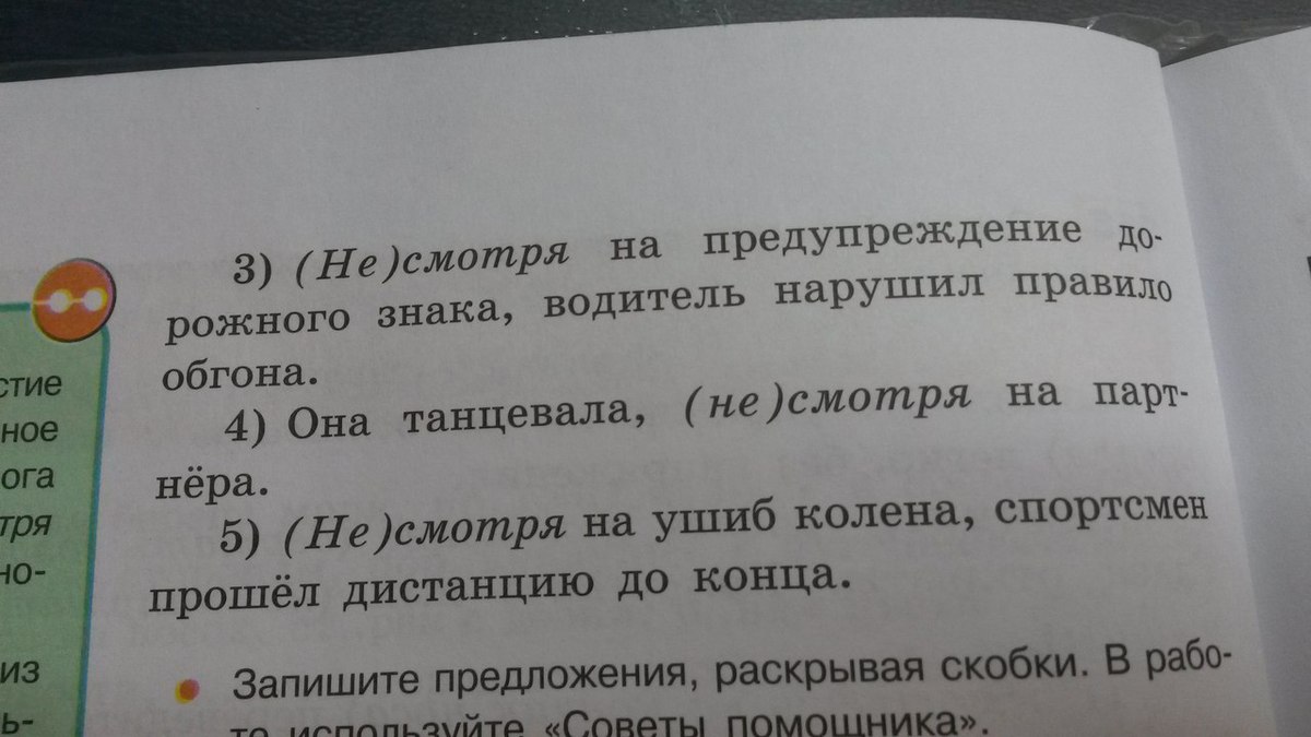 5) Несмотря на ушиб колена , спортсмен прошёл дистанцию до конца.