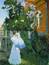 Весенняя картина, написанная счастливым художником. Он изобразил на фоне цветущей белой сирени свою жену в белом платье, создав в картине равновесие и соответствие женщины и цветов. На руках жены – маленькая дочь в длинном, скрывающем ножки платьице в сиреневую полоску.Картина солнечная, теплая, наполненная душевным равновесием и радостью. А задний план – бревенчатый, крашенный желтой краской дом, темно-зеленые листья кустарника, растущего у забора, светлая зелень листьев сирени - делают картину еще более душевной.
