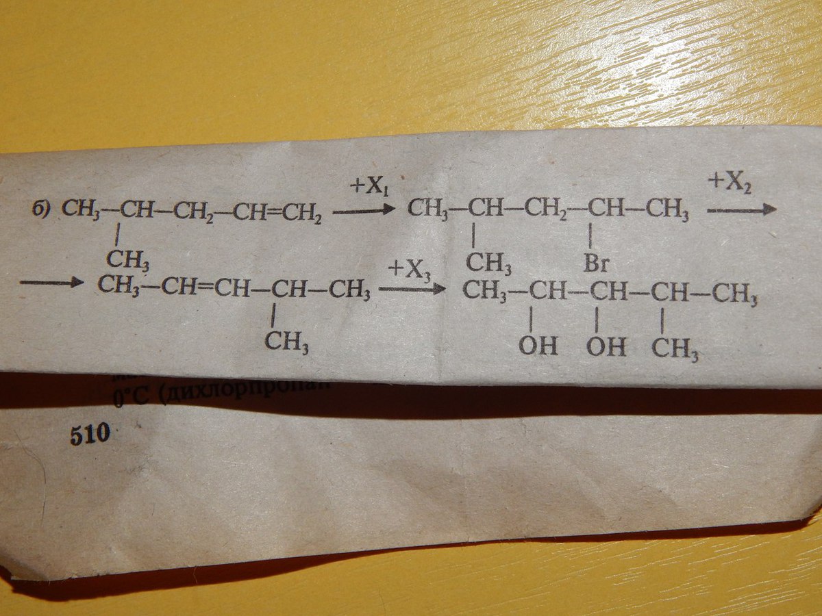 В первой реакции + HBr, во второй + КОН спиртовый. В третьей + КОН изб. водн.